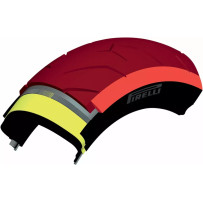 Bi-compound rear construction for lasting mileage and strong grip at full lean. Front design derived from Diablo Rosso Corsa for better drainage, wear regularity, and braking efficiency. Pirelli Enhanced Patch Technology (EPT) and Functional Groove Design (FGD) improve contact and wet performance. Slick shoulder for maximum grip; H-rated fitment available for models like Honda CBR250RR and Kawasaki Ninja 250.