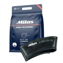 Standard duty inner tube for motorcycles, scooters and mopeds. Premium valve with included washers and cap. Sold in individual pouches for extended shelf life.
