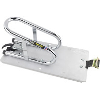 Removable wheel chock stabilizes the motorcycle wheel and lets you reposition the chock and tie-downs along the track; tie-down fitting sold separately.