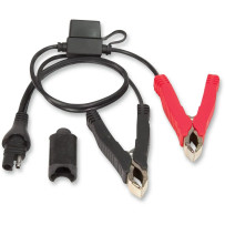 Quickly charges batteries via an auto socket with an in-line rubber seal, built-in 10 A fuse and vibration-proof locking clips.