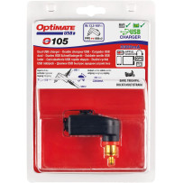 Adapter for powering heated apparel from a motorcycle power socket; rugged, low-profile design.