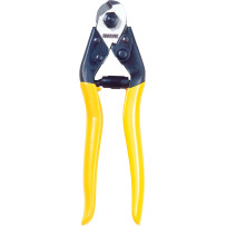 Ergonomic cutter with cushioned grip and extra jaw overlap for clean, quick cuts of brake and derailleur cables; cuts steel cables up to 4 mm.
