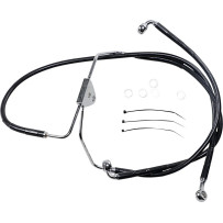 Braided brake line kit with chrome steel fittings for improved braking response.