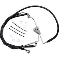 Braided brake lines with chrome fittings and durable construction. Made in the U.S.A. Kit includes necessary fittings for installation.