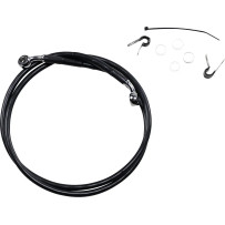 Black vinyl-coated braided extended brake lines with chrome steel fittings. Made in the U.S.A. All measurements approximate.