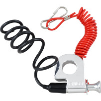 Reliable tether-operated kill switch with clipped 50" cord, optional adjustable wristband, billet aluminum body and water-resistant stainless steel internals. Made in the USA.