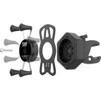 Durable ball mount kit with a mirror-post base and included mounting hardware for motorcycles with relocated mirrors.