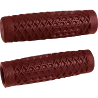 Moto-inspired thin-profile lock-on grips with Ruffian diamond knurl pattern for improved control and comfort.