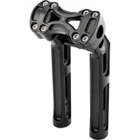 Billet clamps convert your handlebar into an adjustable setup. 4" long with an internal center stop to pinch 2" of each tube. Instructions for cutting and proper torque are included.