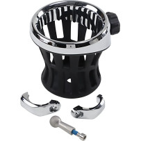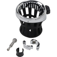 Universal drink holder with contoured rubber net, vibration-damping ring and infinite ball-mount adjustment. Additional mounting options available.