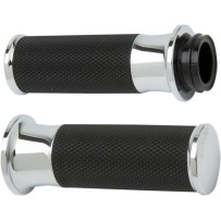 Textured knurled grips with precision-machined end caps for improved hand traction. Sold as a pair.