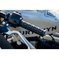Ergonomic Hex Grips with contoured shape and hex-embossed surface for superior comfort and grip. Replaceable bar-mounted end caps.