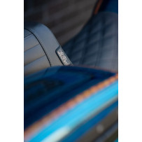3/16" ABS thermoformed base, molded polyurethane foam, rubber bumpers and a fully carpeted bottom protect paint. Narrow front for improved leg clearance and a 6" driver support for comfort and styling. Automotive-grade vinyl with diamond stitch. Made in the USA.