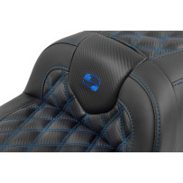 Moves the rider 1.5" rearward; split-cushion design and tall lumbar support for long-distance comfort.