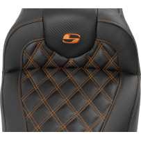 Split-cushion touring seat with tall lumbar support and ventilated soft upholstery for superior long-distance comfort.