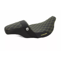 Comfort-focused 2-up seat with a whipped-up tail, rider-forward design for easier reach, and a tapered passenger area.