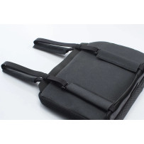 3-D molded memory foam pad with visco-elastic SaddleGel inserts for pressure relief and breathable comfort. Quick-disconnect harness and non-slip bottom.