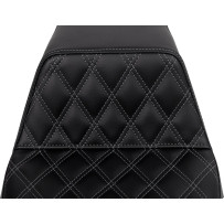 Refined split-cushion touring seat with SaddleGel inserts, tall lumbar support and classic button-tufted upholstery.