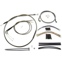 Complete braided cable and brake-line kit with PTFE/Kevlar construction, DOT compliant, assembled in the USA; ideal for ape hanger handlebars with 2" risers.