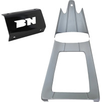 Fills the gap between the front wheel and frame and hides the regulator and radiator. Two-piece design for use with Mini Monkey engine guards; raw finish ready for paint.