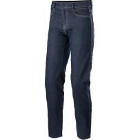 Pantalón de corte regular en denim con armadura Nucleon Plus en rodillas, refuerzos aramídicos, bolsillos para protectores de cadera opcionales y costuras reforzadas. EN 17092-4:2020 Clase A.