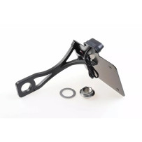 Soporte de matrícula más corto del mercado con acabado en polvo resistente y luz de matrícula con homologación E. Instalación sencilla; tornillo incluido.