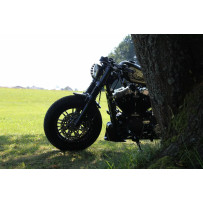 Rejilla de faro perforada de acero, recubrimiento en polvo negro. Se atornilla al faro para montaje sencillo y ajuste preciso en Sportster.